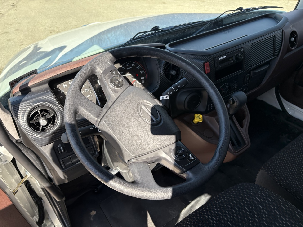 The interior of the vehicle is thoughtfully designed for driver comfort and convenience, with ergonomic seating and intuitive controls. The cabin is equipped with modern technology features to support communication and navigation during transportation operations.