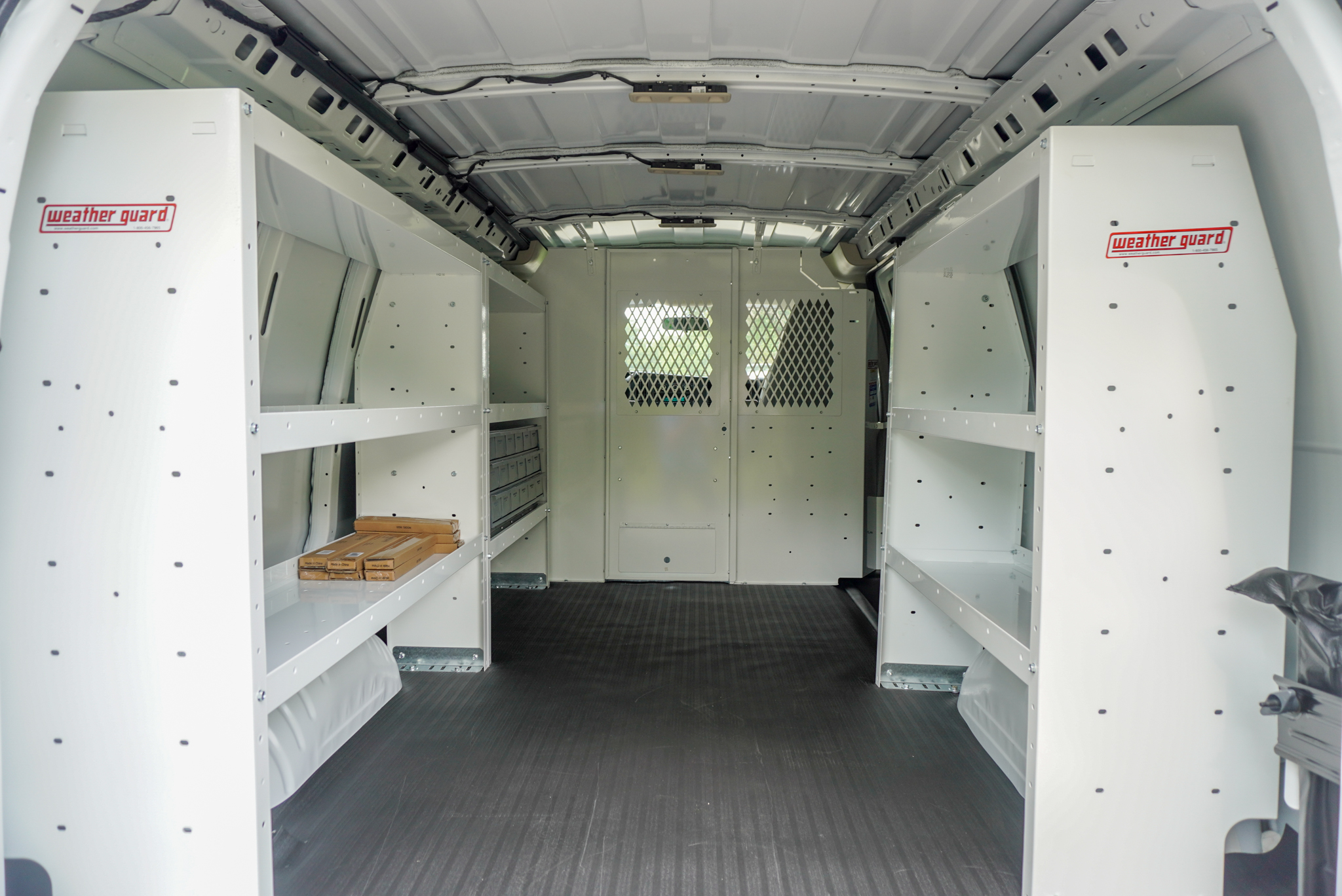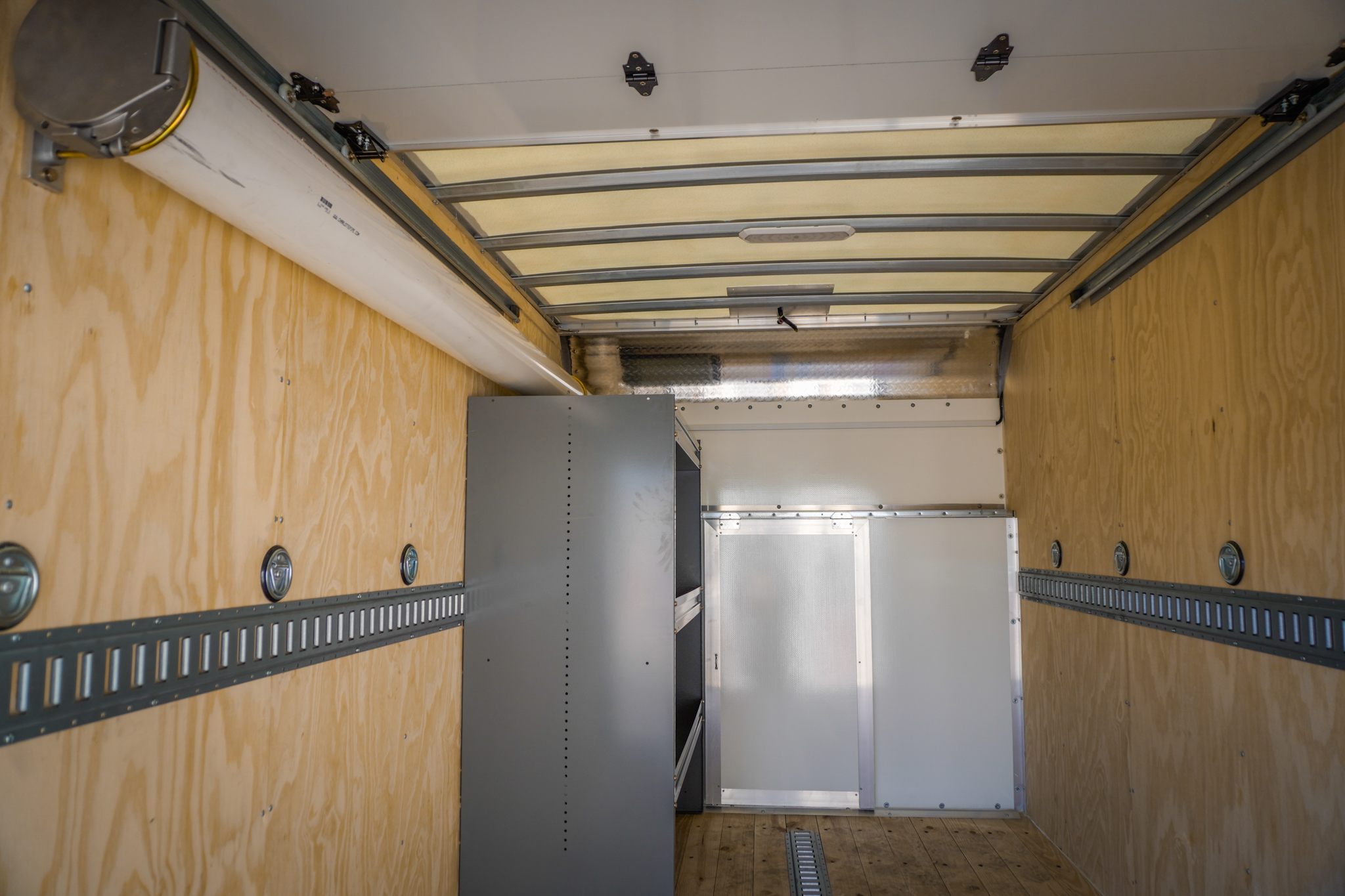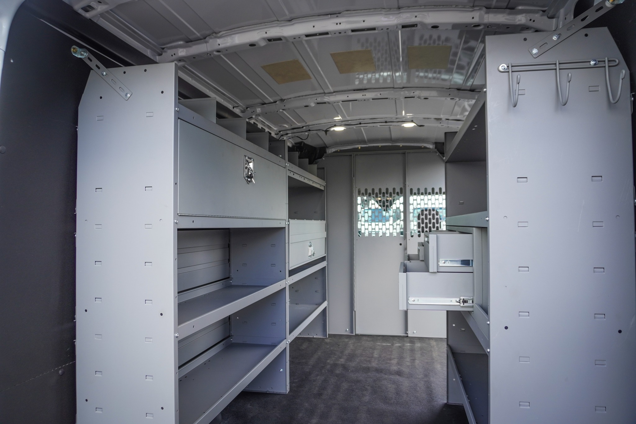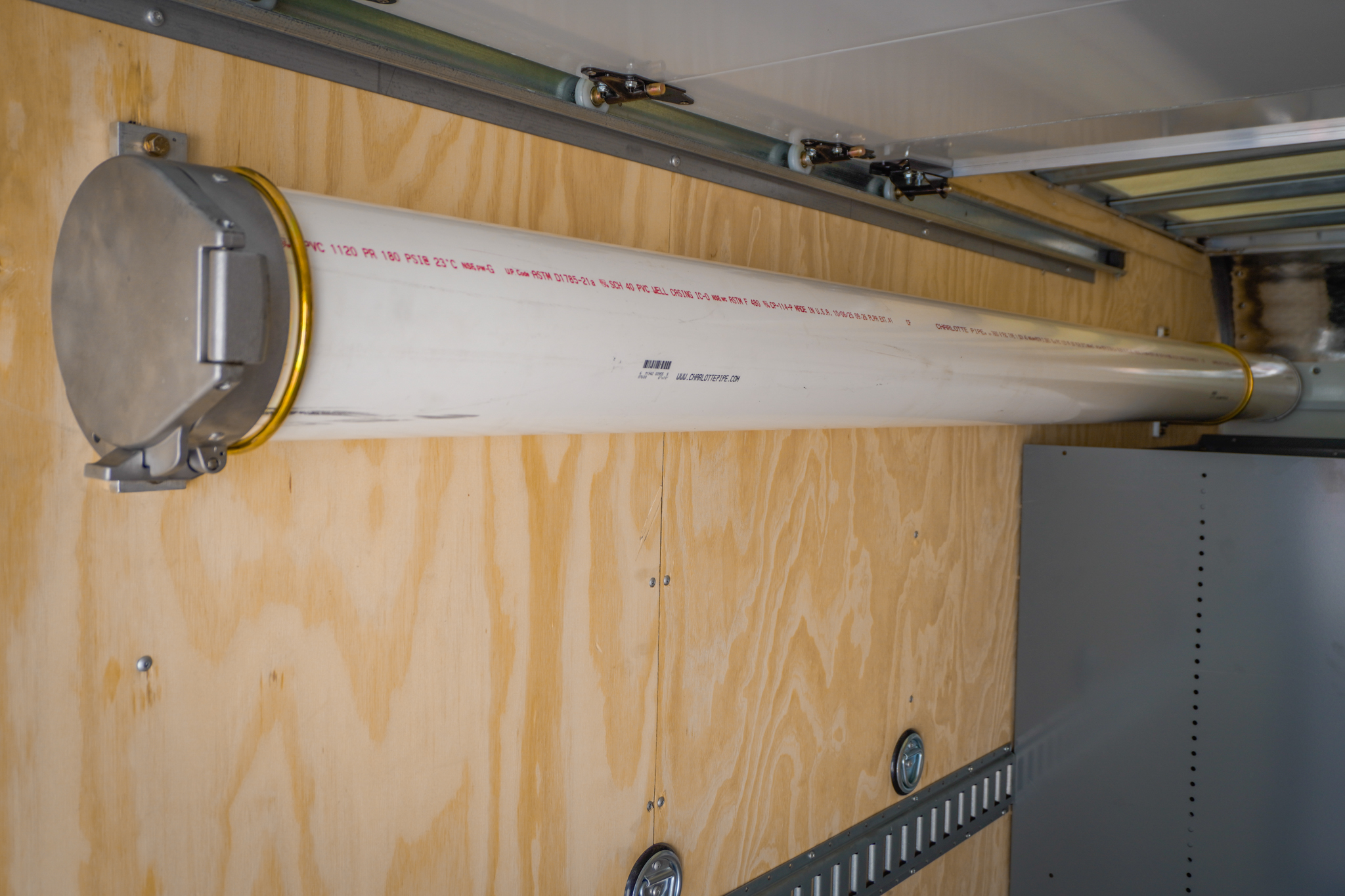 This recent build for Mr. Goodwater in Belvidere, IL features a 10' plumbing pipe rack for storing copper, two rows of E-track, a 24" W x 60" L shelving unit, and more — all tailored to meet their unique needs as a water treatment business.