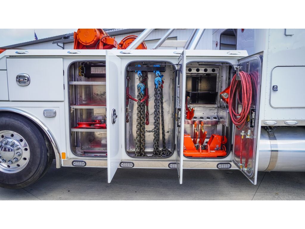 **50 Ton** **3 Stage Recovery Boom** **Dual 50,000lb Winches**
